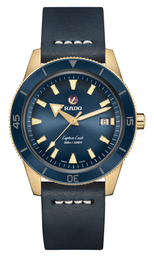 Introducing the Rado Captian Cook Bronze, three new additions to the already popular Rado Captain Cook automatic watch line. The main difference between this watch and the existing automatic is Rado’s use of bronze. But of course, the “Master of Materials” couldn’t use just any bronze, they’re using a special mixture of bronze called aluminum bronze or CuAl. This type of bronze uses aluminum as the main alloying metal as apposed to copper and tin in standard bronze. This makes the case metal especially resistance to discoloration and oxidation, or patina to us watch nerds. This is either good or bad news depending on who you talk to as part of the appeal of bronze is the unique look and speed it ages with. As someone that’s always been slightly concerned about how fast a standard bronze watch would go from cool patina to unusable crown and bezel, I find it comforting. As for the choice to go bronze, in general, I love it, I wish more watches were bronze. Something about the metal has always struck me as the more rugged lovable working man’s gold. Beautiful and warm in glow yet unpretentious and tough. I think it’s an especially romantic material for a dive watch because of it’s connection to other maritime tools. The bezel is ceramic and comes in three colors green, blue, and brown which all match the watches dial. I’m a sucker for an odd bezel or dial colorway, which explains my love of Zodiac, and I really like the brown watch in this line-up. The brown and bronze complement each other perfectly and also make the watch look right at home on the brown leather strap. This brings me to my only gripe with the watch, the leather strap. But it’s not what you think, I don’t mind a dive watch on a leather strap. I have a 16610 that I throw on a nice leather strap from time to time. Its that it doesn’t also come with a rubber strap. As this model is mostly an aesthetic update added to the Cook automatic watch line it is still a fully capable tool watch with a screw-down crown and 300m water resistance. With a capable tool watch, I want to know that with a simple strap change I can be beach ready! Yes I could just buy one aftermarket and I know it’s a trivial thing to complain about but half of talking about watches is complaining about or rejoicing over tiny details. Overall I think it’s a great addition from Rado and love the way they implemented the use of bronze. The watch will be available in April online and from Rado retailers at $2,410.