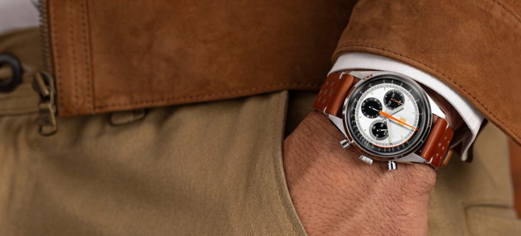 The use of color on the TPS is what first caught my attention. I love watches that thoughtfully use funky colors and all three of these watches use color really well. The TPS one looks like a Braun calculator and a 60’s Heuer had a baby. A design combination that I didn’t realize would resonate with me so much. My favorite, however, is the TPS three. The combination of the “grizzled blue” and yellow hands and accents is a look I don’t think I’ve seen on a watch before. It’s still very much a 60’s stye racing watch but in a new and unique way. To drive home the racing vibe each watch comes with a racing-style leather strap. All models also come with a silicone strap and a watch roll pouch. This is a nice touch at any price point but at this price point, it’s insanely generous. It’s also something more up market watch brands should take note of. Can you imagine a Rolex Daytona 116519LN also coming with a racing leather strap!